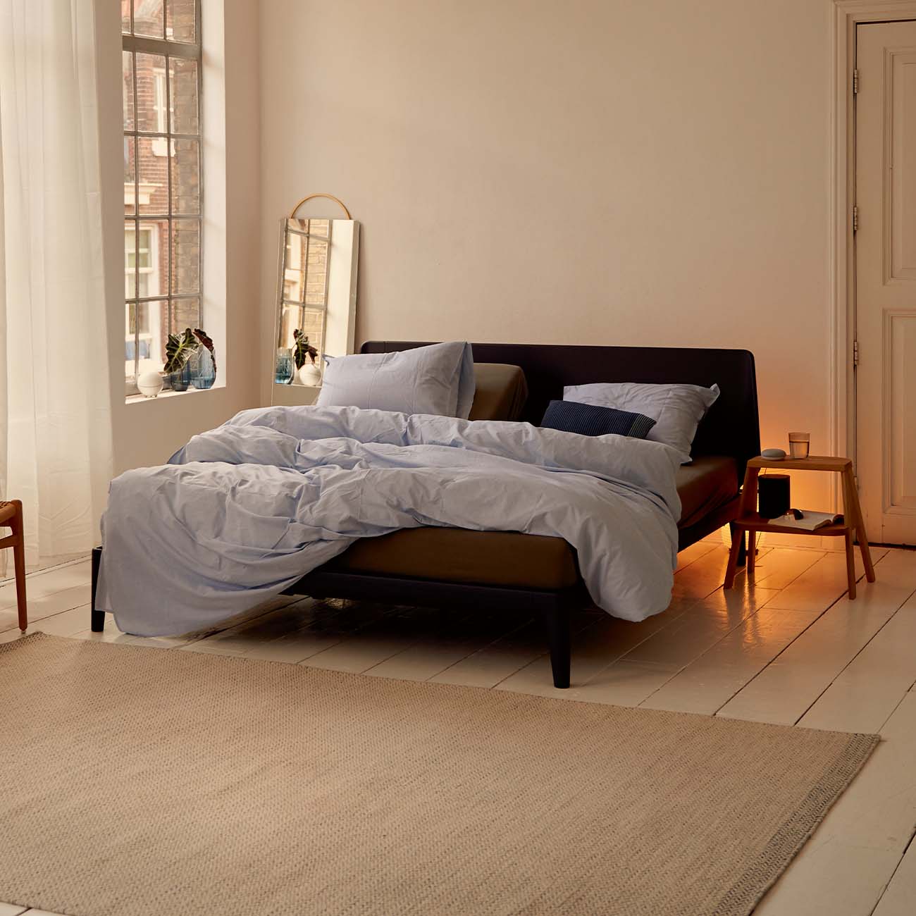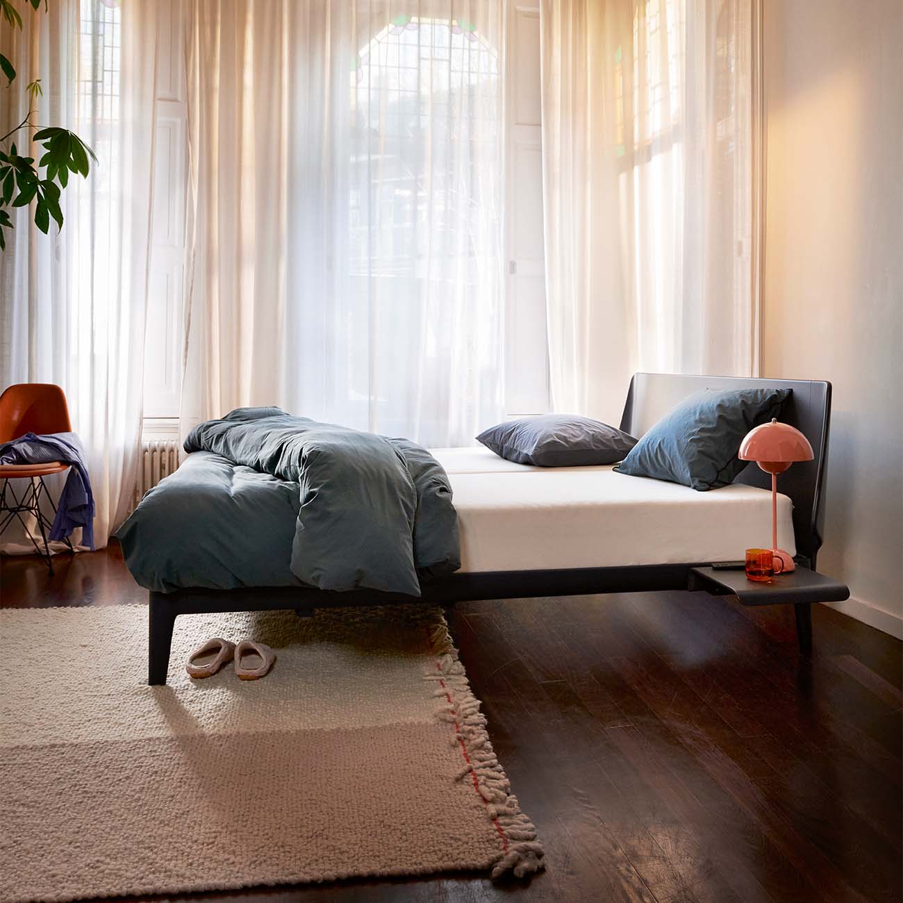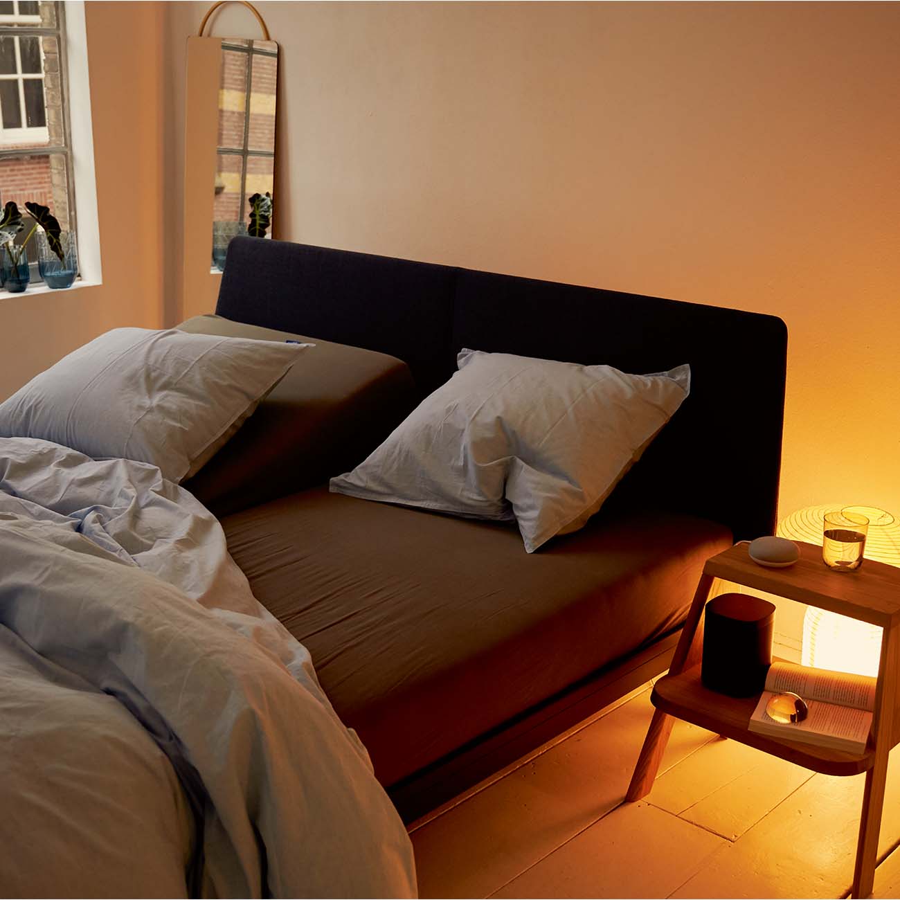 Het frame van de Auping Essential is gemaakt van 87% gerecycled aluminium, waardoor het niet alleen stevig, maar ook milieuvriendelijk is. De ronde vormen zorgen voor een subtiele en elegante uitstraling. Je kunt kiezen uit verschillende poedercoatkleuren voor een afwerking die perfect aansluit bij jouw interieur. Voor extra comfort en stijl is het bed optioneel verkrijgbaar met een gelakt houten of gestoffeerd hoofdbord.
