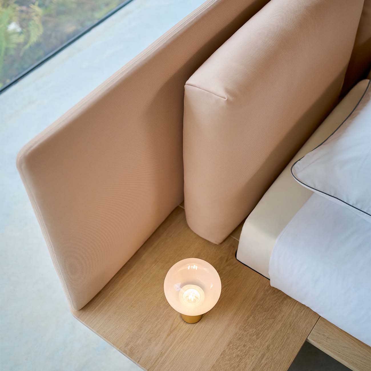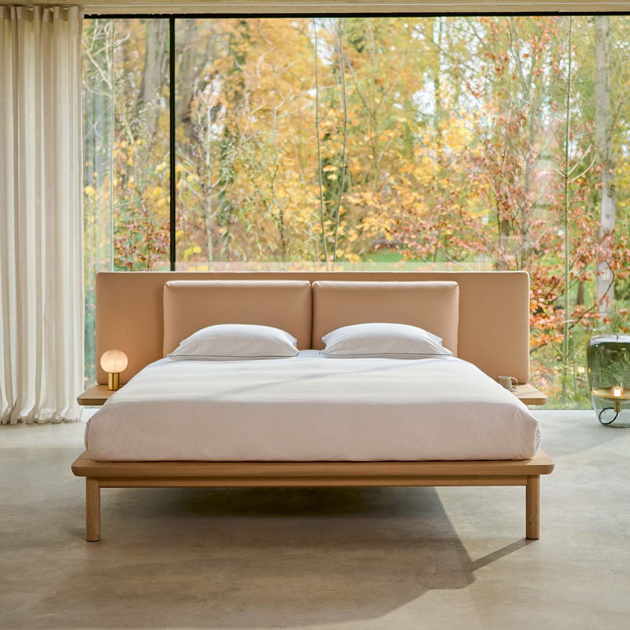 Dit bed is verkrijgbaar in verschillende formaten en kan worden afgewerkt in een kleur naar keuze. De combinatie van eikenhout en hoogwaardige stoffering zorgt voor een tijdloze uitstraling die moeiteloos in elk interieur past.