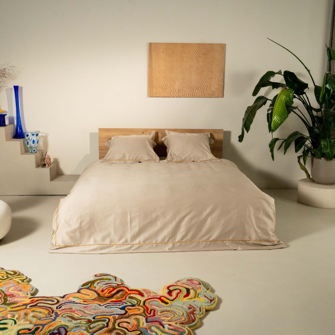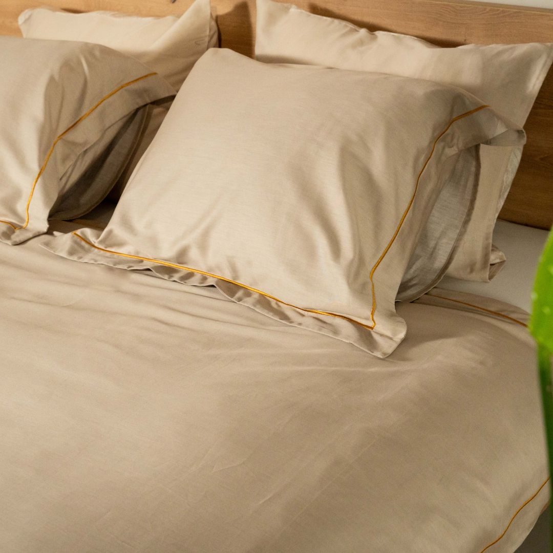 Dekbedovertrek Arida geeft jouw slaapkamer een luxe hotelgevoel! Het zand effen overtrek heeft een chique gouden rand op zowel het overtrek als de slopen. Daarnaast hebben de kussenslopen een luxe Oxfordrand: een sierrand rondom het sloop waardoor de kussens nóg groter en zachter ogen. Katoen-satijn heeft door het weefsel van nature een luxe maar smaakvolle glans. Een ander voordeel: deze stof voelt superzacht en soepel aan! Dekbedovertrek Arida is gemaakt van 100% GOTS-gecertificeerd katoen.