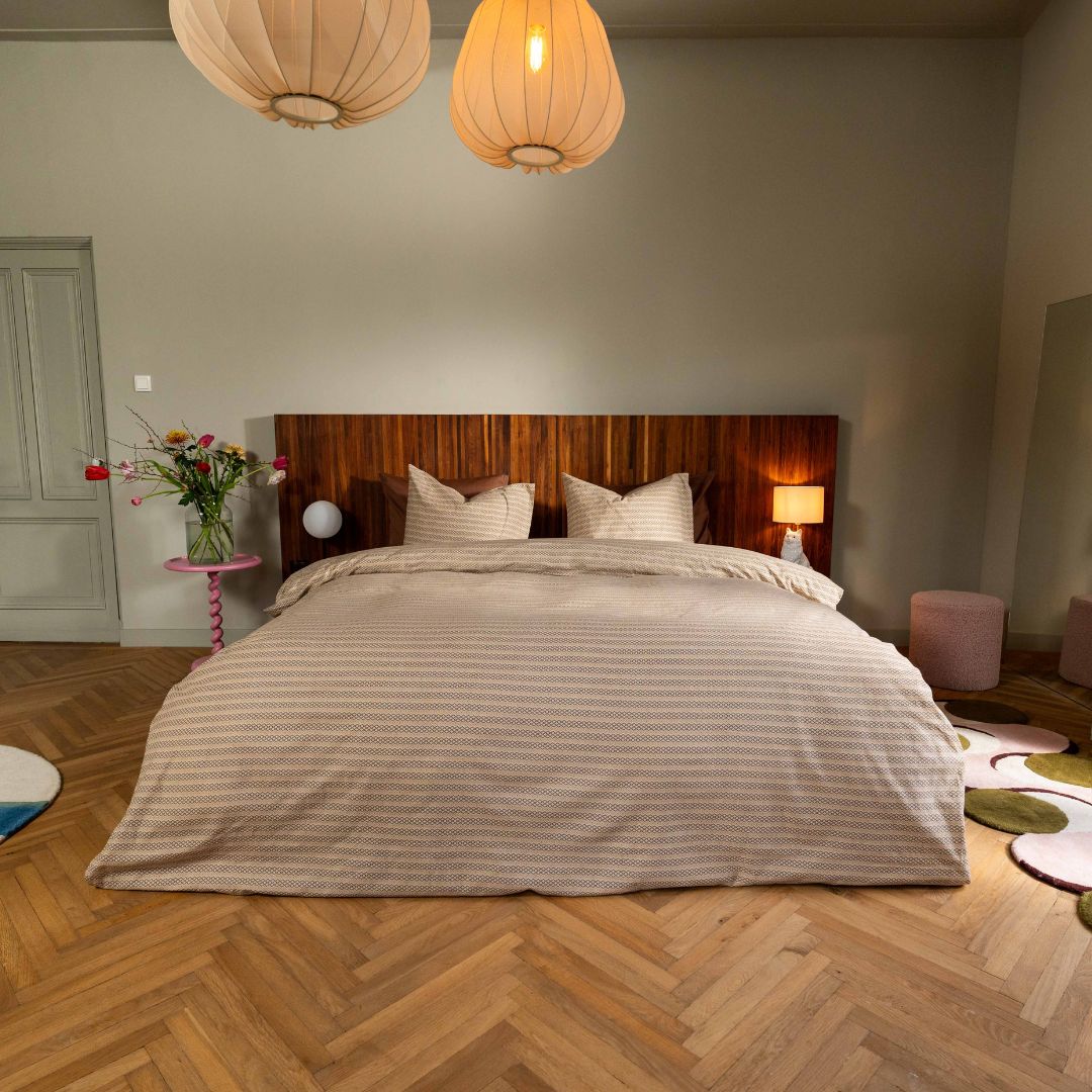 Dekbedovertrek Lueso voelt als thuiskomen in een knus winterhuisje, ergens midden in de natuur. Het dessin bestaat uit een fijne, ritmische allover print in warme aardetinten. Dankzij de Cloud Brushed van de samenstelling katoen-flanel voelt dit dekbedovertrek extra comfortabel aan op de huid. Ideaal voor mensen met een gevoelige huid of wie houdt van een wollig-zacht gevoel. Hoewel flanel bekend staat om zijn warmte, blijft het 100% katoen en dus ademend. Dat betekent warm zonder zweten. Waardoor jouw lichaamstemperatuur perfect in balans zal blijven tijdens je diepe slaap.