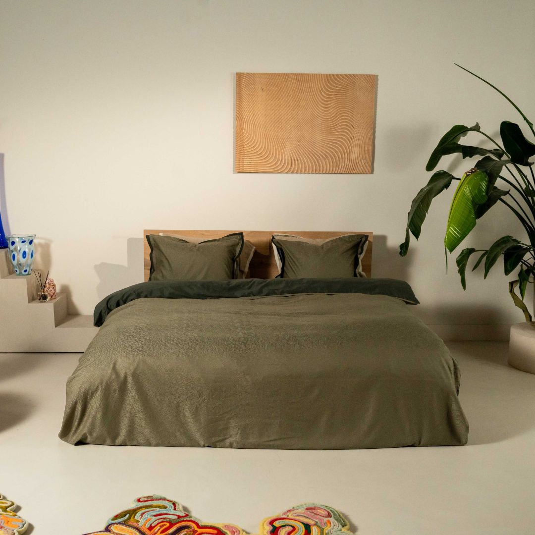 Dekbedovertrek Rausso tilt jouw slaapkamer naar een hoger niveau. Door de subtiele glans en de zachte groentinten heeft de Rausso een luxe uitstraling. De verfijnde dot Jacquard creëert een levendig reliëf dat prachtig meespeelt met het licht. Daarnaast hebben de kussenslopen een dubbele Oxfordrand: een sierrand rondom de sloop waardoor de kussens nóg groter en zachter ogen. Dit geeft een stijlvol contrast en een luxe uitstraling.  Het dekbedovertrek heeft een samenstelling van 50% Tencel en 50% Katoen. Deze combinatie is het beste van twee werelden. Tencel staat bekend om zijn zijdezachte touche en uitstekende vochtregulatie, terwijl katoen zorgt voor stevigheid en ademend vermogen.