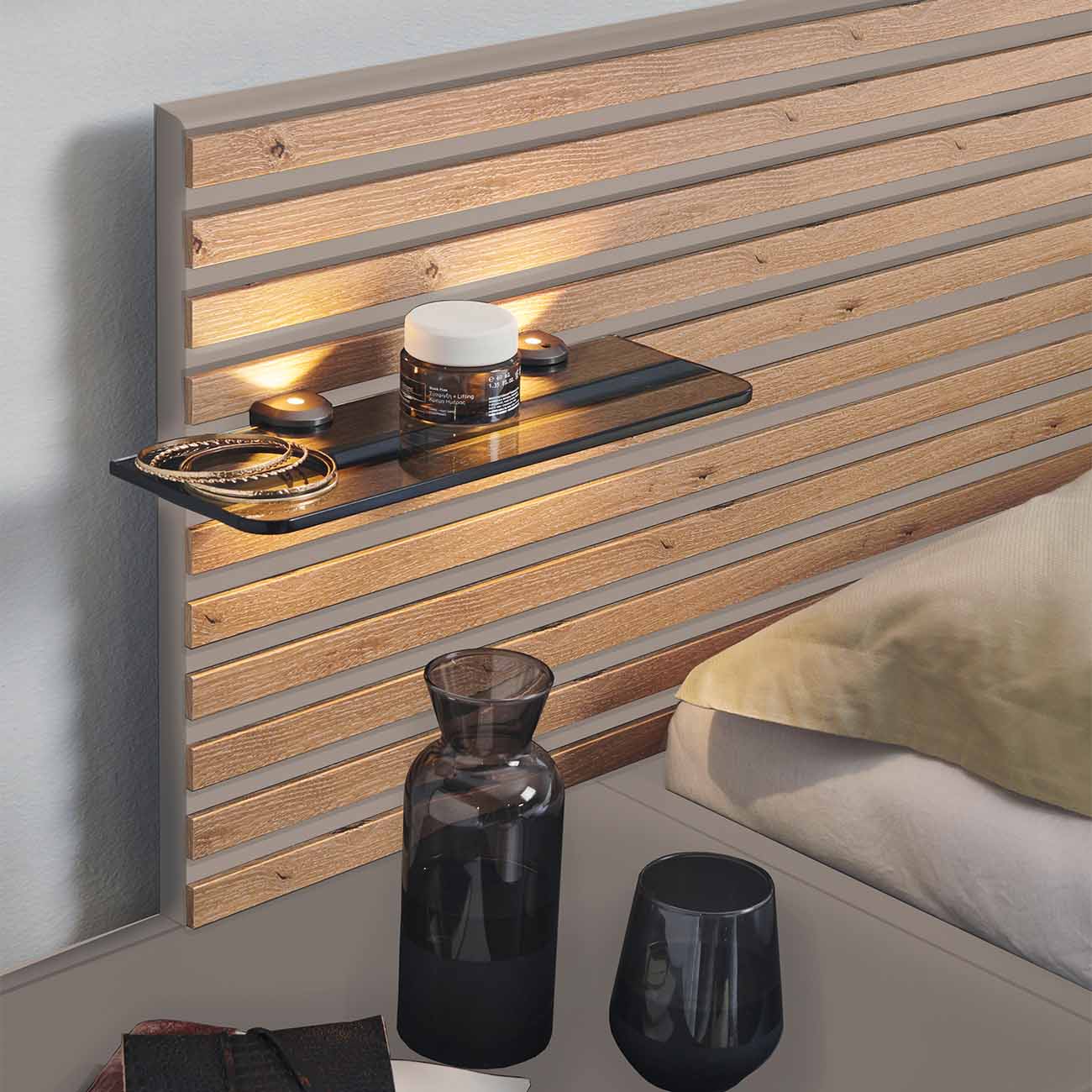 Het Phillow Ebba Ledikant straalt moderne elegantie uit dankzij de trendy kleuren Basalt en Champagne. De toevoeging van Bianco eiken latten zorgt voor een warme en sfeervolle uitstraling. Dit eigentijdse ledikant brengt balans tussen strak design en natuurlijke elementen.