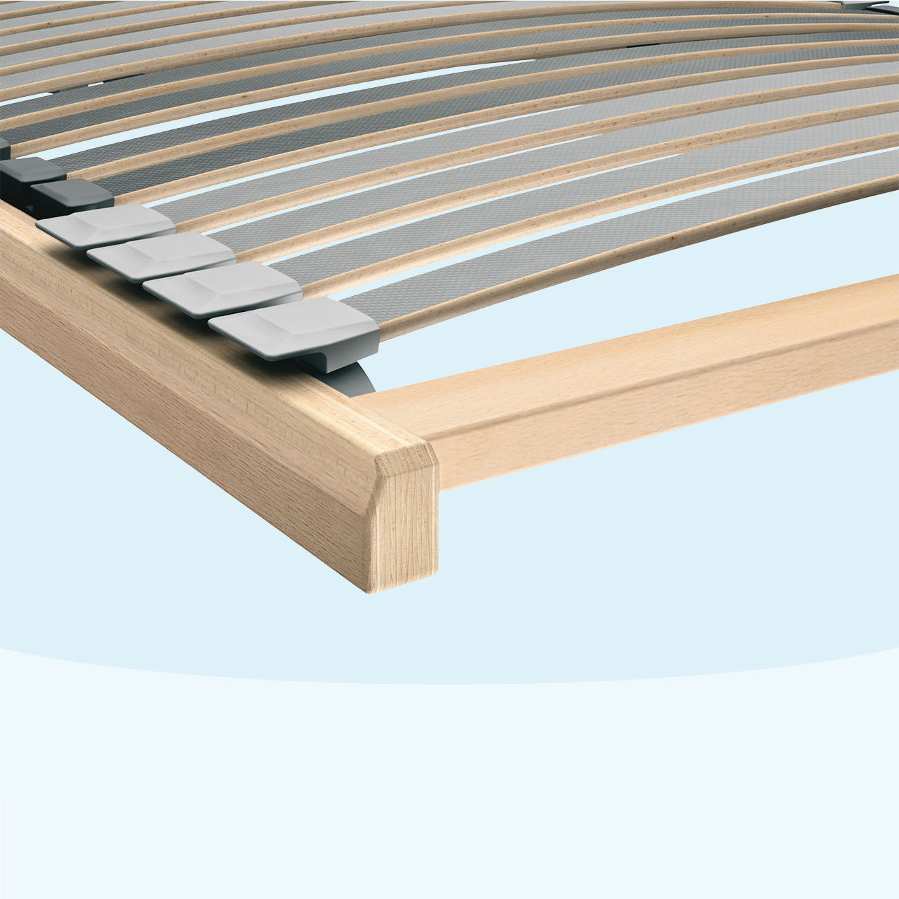 De Selecta FR6 vlakke lattenbodem biedt een stabiele basis en een gepersonaliseerd ligcomfort dankzij zijn hoogwaardige afwerking en instelbare comfortzones. Deze vlakke uitvoering is volledig metaalvrij en combineert een stijlvol, dun profiel van ca. 6 cm met een duurzame constructie van massief beukenhout.