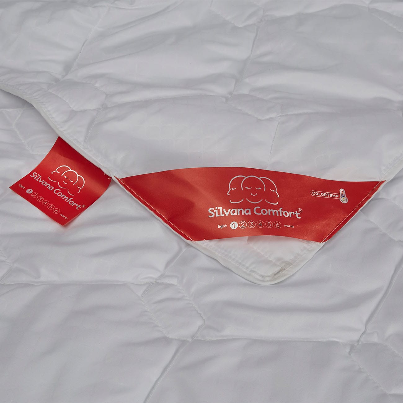 Dit lichte dekbed maakt deel uit van het innovatieve Colortemp® systeem van Silvana. Elke kleur vertegenwoordigt een ander warmteklasse, en dankzij de knoopsgaten kunnen de verschillende dekbedden eenvoudig met elkaar worden gecombineerd tot een 4-seizoenen dekbed op maat.