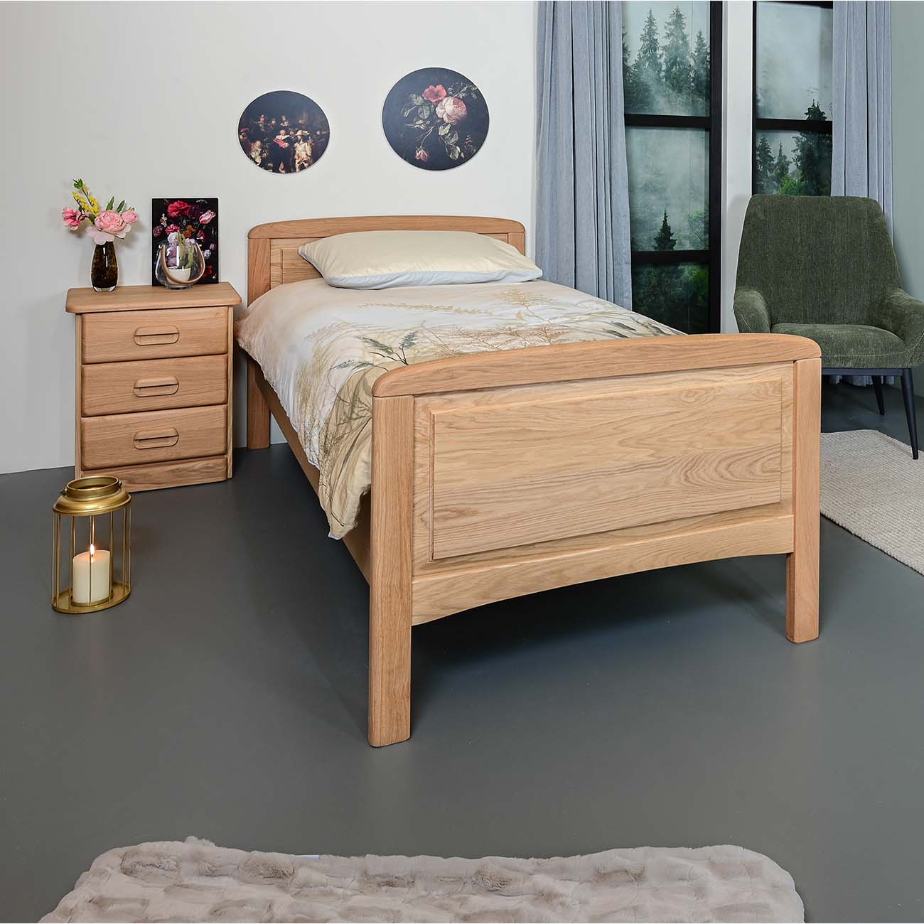 Het Ledikant Leon combineert een stijlvol ontwerp met functionele eigenschappen, ideaal voor een seniorenslaapkamer. Voor een complete inrichting is er een ruime keuze aan bijpassende slaapkamermeubelen, zoals kasten en nachtkastjes.